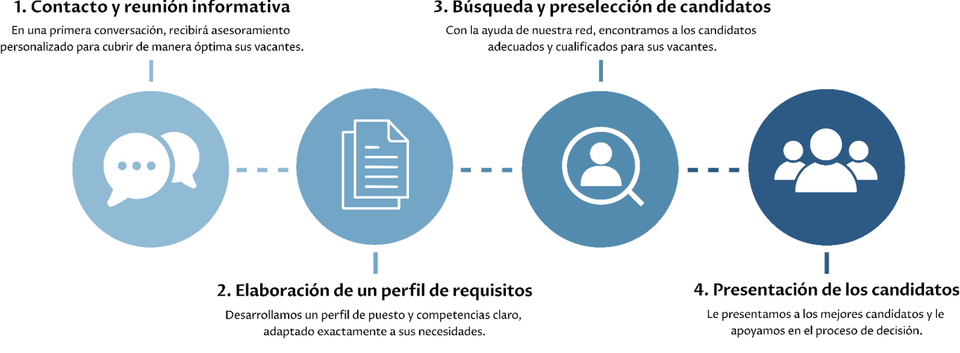 La búsqueda de profesionales cualificados puede ser un proceso que requiere mucho tiempo y recursos. Con JOBBX, se beneficia de una intermediación profesional de talento especializado procedente de España. Comenzamos con una definición clara de sus requisitos para llevar a cabo una investigación enfocada y exhaustiva en la identificación de los candidatos adecuados. Nuestro proceso probado le ahorra tiempo y recursos valiosos en la contratación.